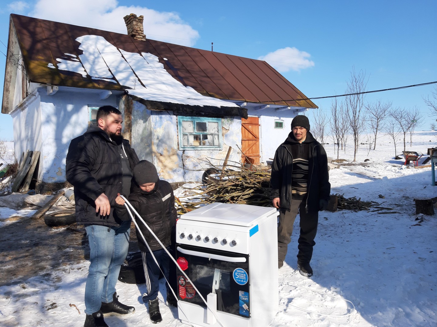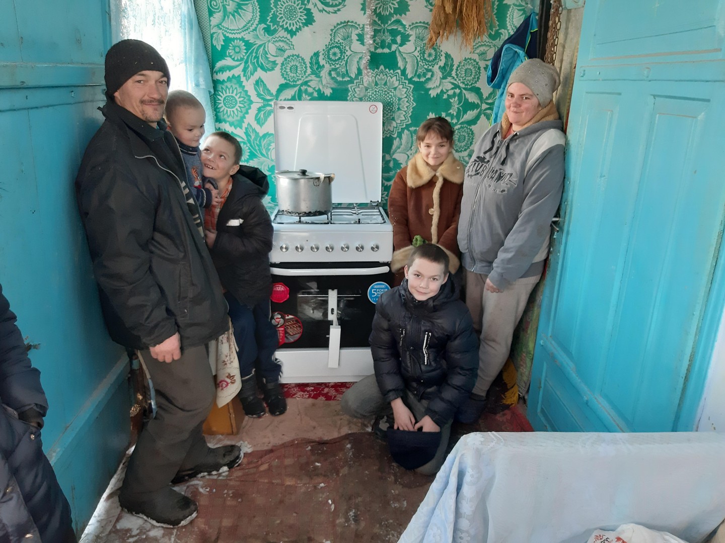 wir bedanken uns herzlich für den Gasherd, den wir von der Mission erhalten haben. Wir ziehen vier minderjährige Kinder groß. Ich arbeite als Reinigungskraft, und mein Mann arbeitet auf einem Bauernhof. Wir verdienen beide nur den Mindestlohn. Wir brauchten dringend einen Gasherd. Während des Krieges fällt in unserer Gegend oft der Strom aus, daher kann ich mit einem Gasherd Essen für meine Kinder zubereiten.